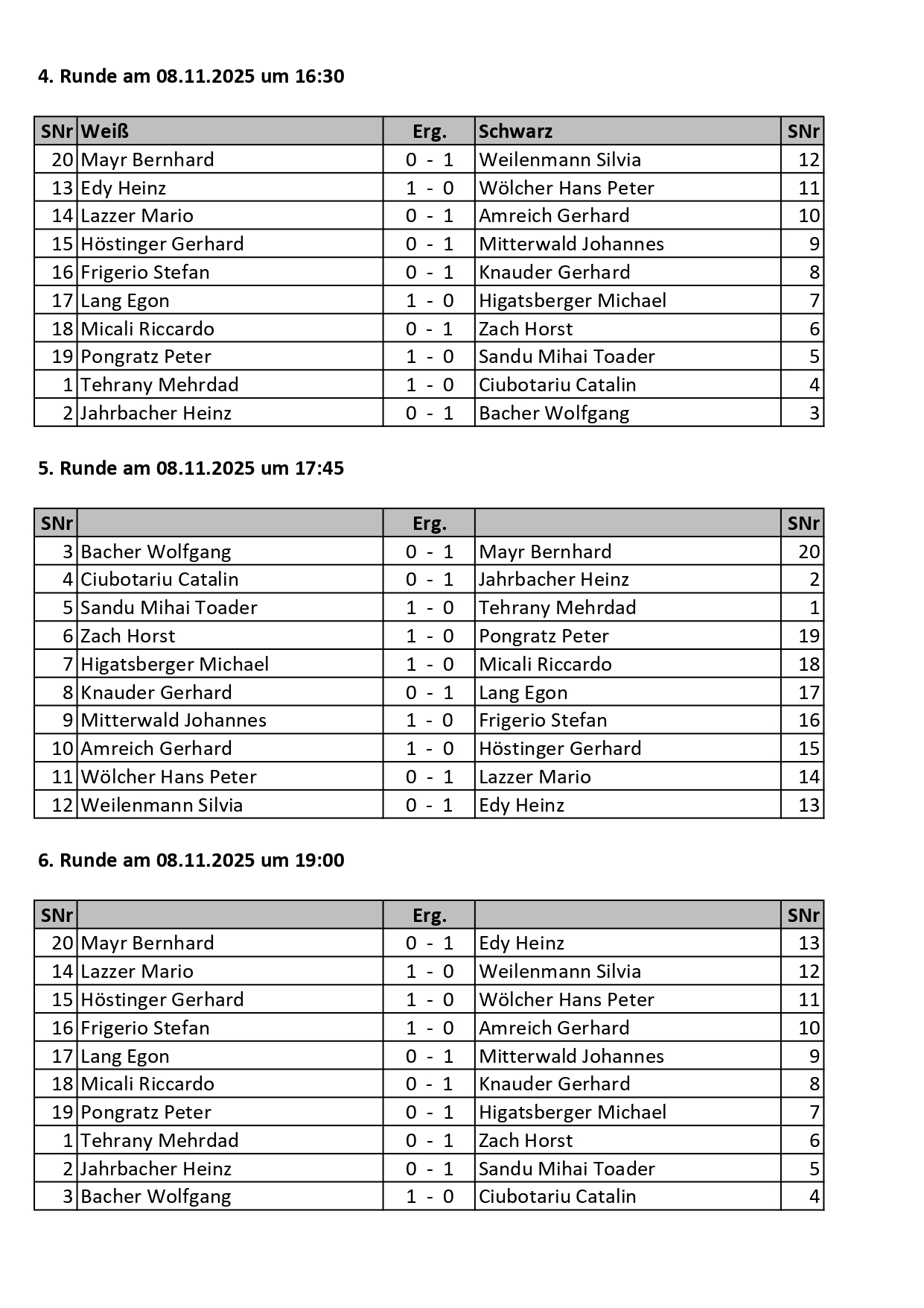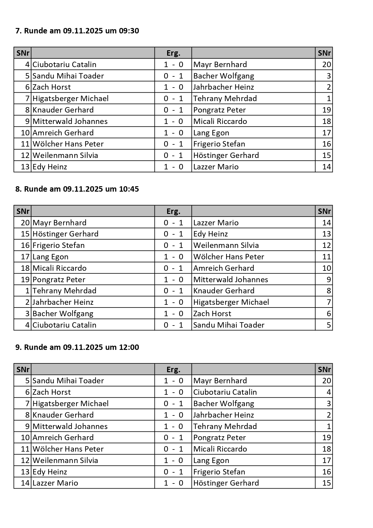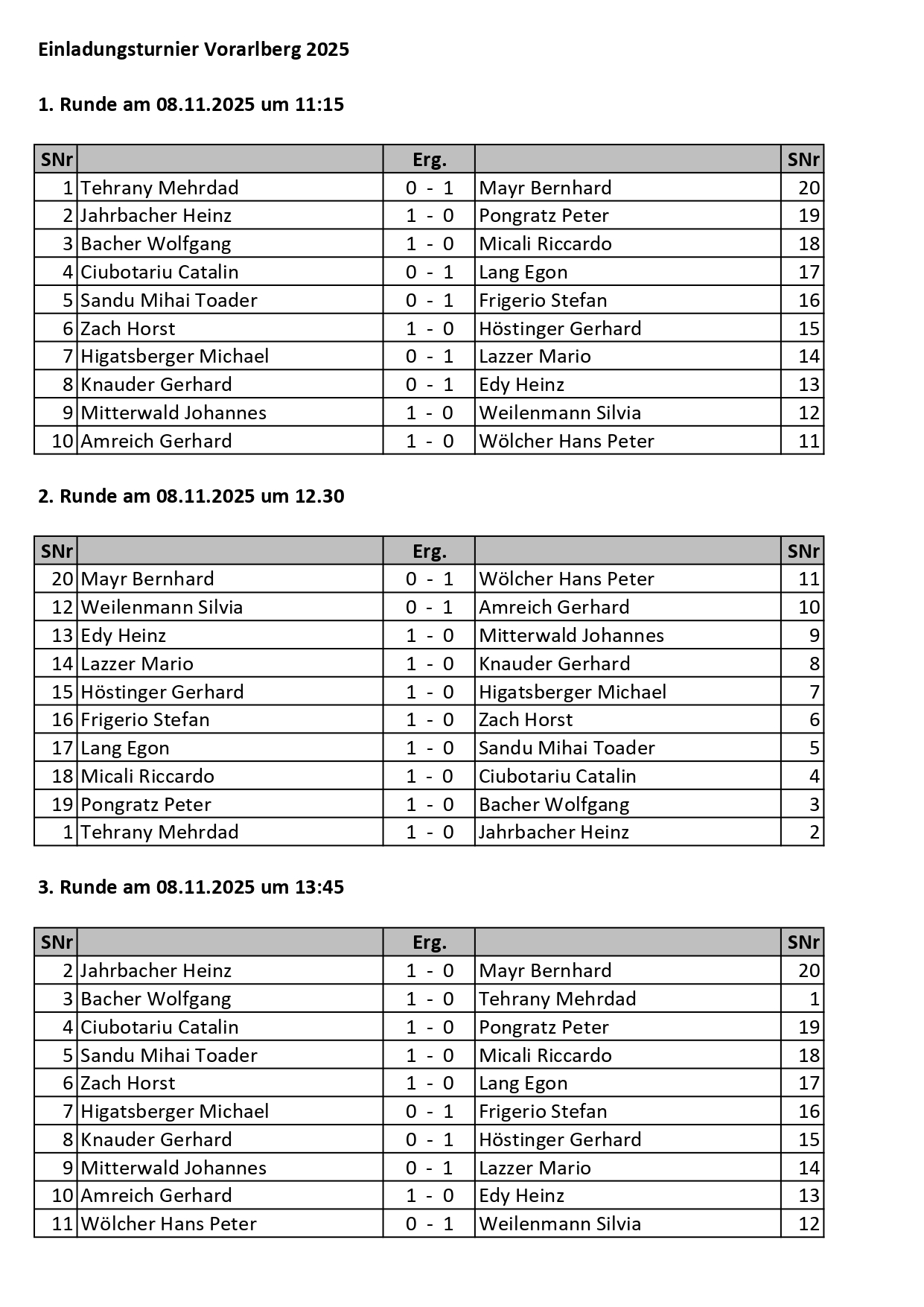 Ergebnis des Einladungs-Turniers Vorarlberg vom 07.11. bis 09.11.2025